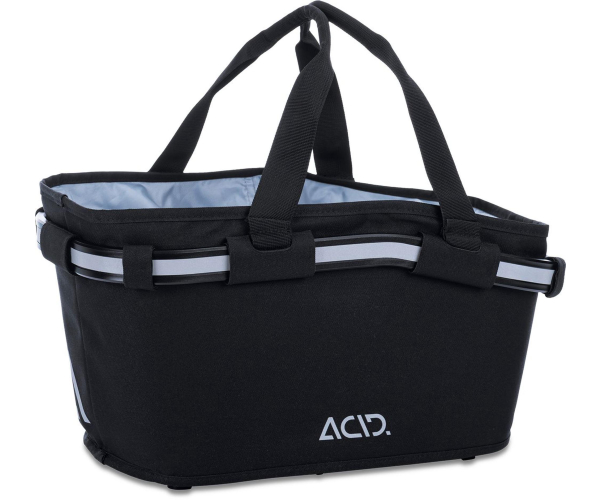 Nog even snel wat boodschappen doen? Het aluminium frame van de ACID City 20 achterdragertas kan wel wat hebben. Deze 20 liter tas is met een trekkoord afsluitbaar, binnenin vindt je een afsluitbaar vak voor sleutels en dergelijke. Met de ACID FiLink is de bevestiging appeltje-eitje en met de twee handgrepen is-makkelijk te dragen. Dankzij de reflecterende applicaties ben je bovendien beter zichtbaar in het verkeer.